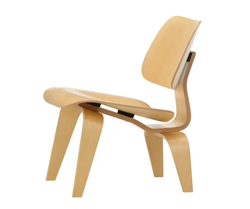 1946 : Après la Seconde Guerre mondiale, la technique de moulage du contreplaqué développée par les Eames est au point. Ils présentent leurs créations au concours du MoMA, où ils dévoilent des pièces emblématiques telles que la LCW (Lounge Chair Wood) et la LCM (Lounge Chair Metal).
