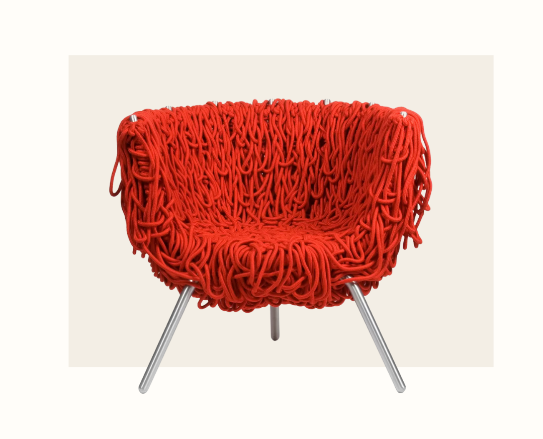 Les frères Campana, designers brésiliens, puisent leur inspiration dans la richesse de la culture brésilienne, en valorisant les matériaux simples, le recyclage et les techniques artisanales. Avec la chaise Vermelha, ils ont su transformer une corde ordinaire en une pièce haut de gamme, à la fois brute et organique. Cette création incarne parfaitement la diversité et l'énergie créative du Brésil, faisant d'un matériau banal une véritable œuvre d'art fonctionnelle et iconique. Elle est aujourd’hui exposée au musée MoMA à New York.