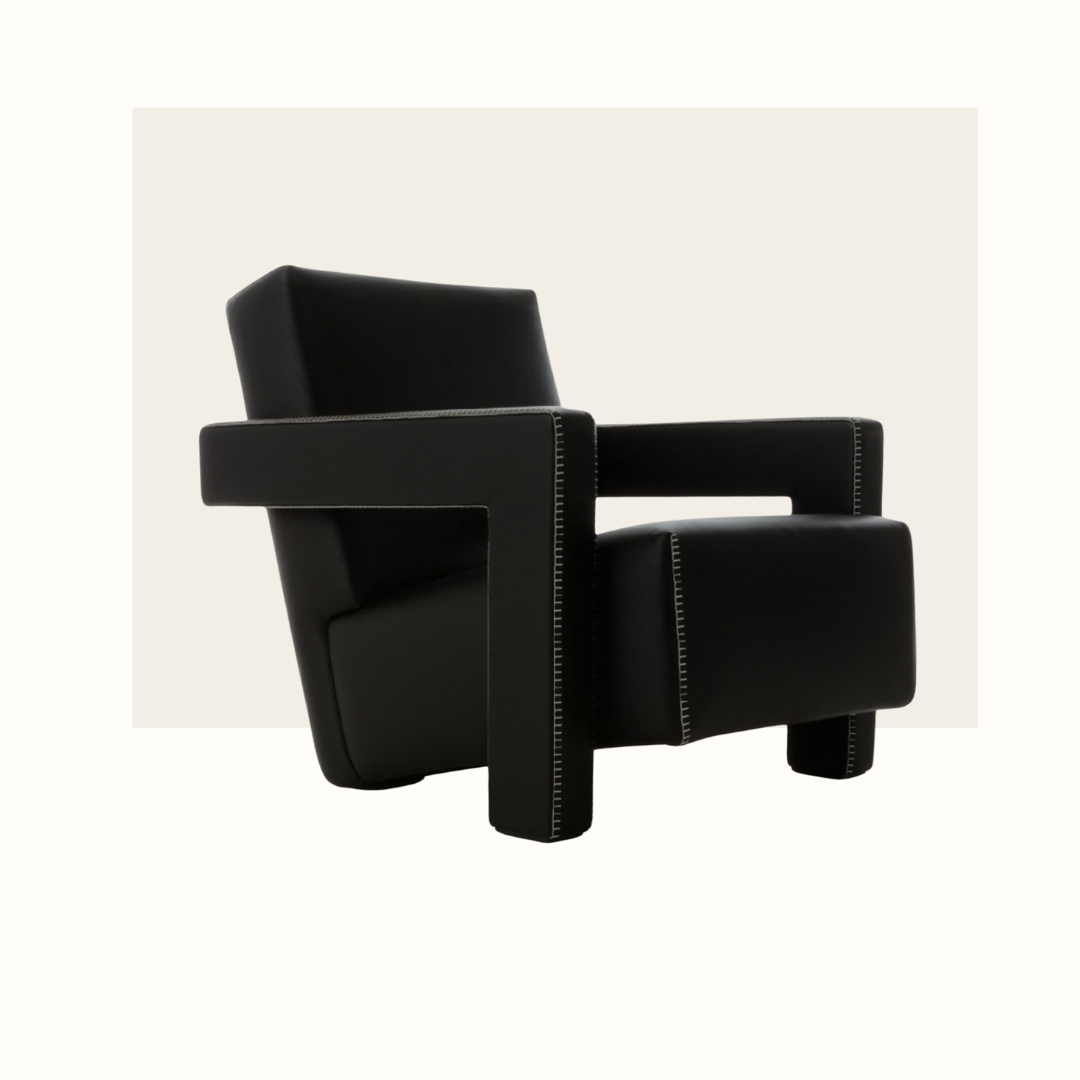 Le fauteuil 637 Utrecht est une icône du design créé par Gerrit Thomas Rietveld en 1935. Son nom, "Utrecht", fait référence à la ville des Pays-Bas où Rietveld a vécu et travaillé. Rietveld a adopté une approche minimaliste et géométrique pour concevoir ce fauteuil. L'une de ses caractéristiques les plus reconnaissables est la forme de ses accoudoirs, qui sont en forme de Let se prolongent jusqu'au sol pour former un angle droit avec l'assise et le dossier. Et la finesse des surpiqûres du tissu ou du cuir crée un contraste et met en valeur ses lignes épurées.