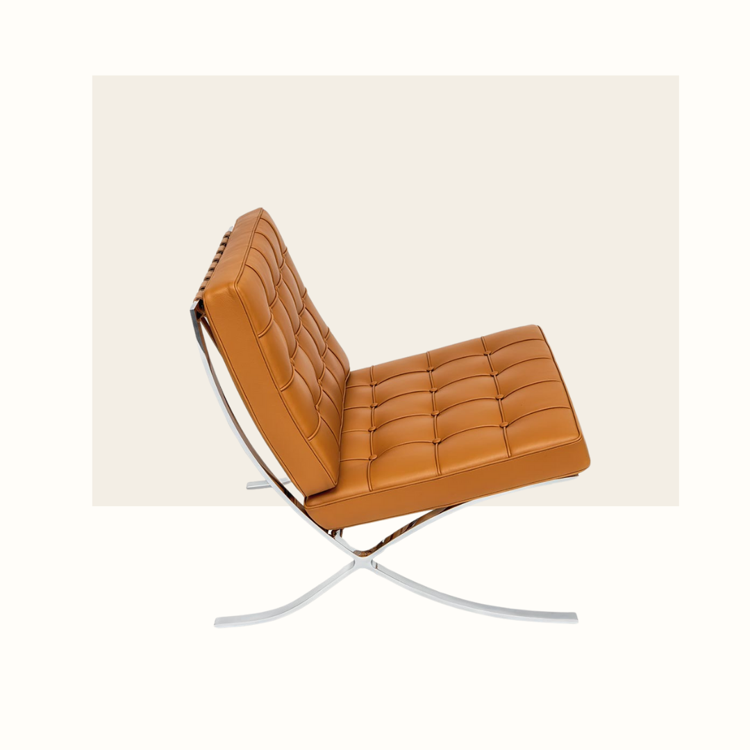 Iconique, le fauteuil Barcelona a été créé pour l'exposition universelle de Barcelone en 1929 par Ludwig Mies van der Rohe, d'où son nom. Il s'est inspiré de la chaise pliante des pharaons et du tabouret en forme de croix des Romains. Lors de l'expo, le roi Alphonse XIII d'Espagne était tellement fasciné par le fauteuil Barcelona qu'il en voulait un aussi et c'est ainsi que le succès de ce fauteuil a été immédiat. Ses matériaux onéreux et sa fabrication compliquée font de ce fauteuil un trésor du design (+ beau que confort).