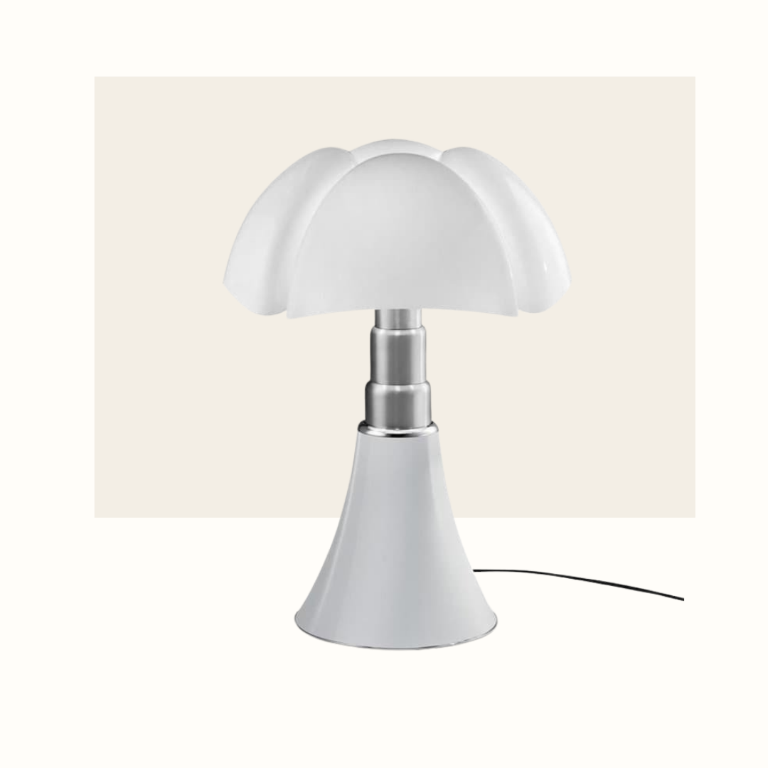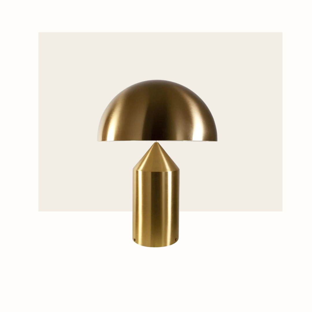 Magistretti, un architecte italien qui maitrisait l'équilibre entre tradition et innovation a créé la lampe Atollo en 1977, une lampe connue pour son design minimaliste et élégant. Pour un salon, une chambre à coucher ou un bureau, l'abat-jour réfléchissant crée un éclairage indirect qui réduit l'éblouissement tout en émettant une lumière douce et atmosphérique ce qui offre un éclairage ambiant chaleureux. Fabriquée en métal, elle était à l'origine fabriquée en noir et blanc. Aujourd'hui elle est aussi faites avec différentes finitions (laiton, en nickel et en bronze).