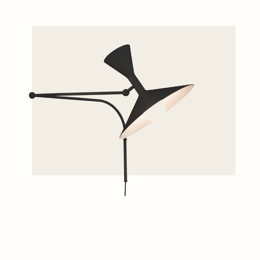 Créée entre 1949 et 1952, on l'appelle "La lampe de Marseille". Cette lampe est a la fois originale et ingénieuse, elle éclaire de chaque côté grâce à son abat-jour pivotant, permettant à la fois un éclairage direct et indirecte. Son bras orientable peut aller jusqu'a 1m66. Dans cette applique iconique on retrouve toutes les valeurs de Le Corbusier : l'efficacité fonctionnelle, la simplicité et l'esthétique épurée du design. Il l'a spécifiquement créée pour l'Unité d'Habitation de Marseille.