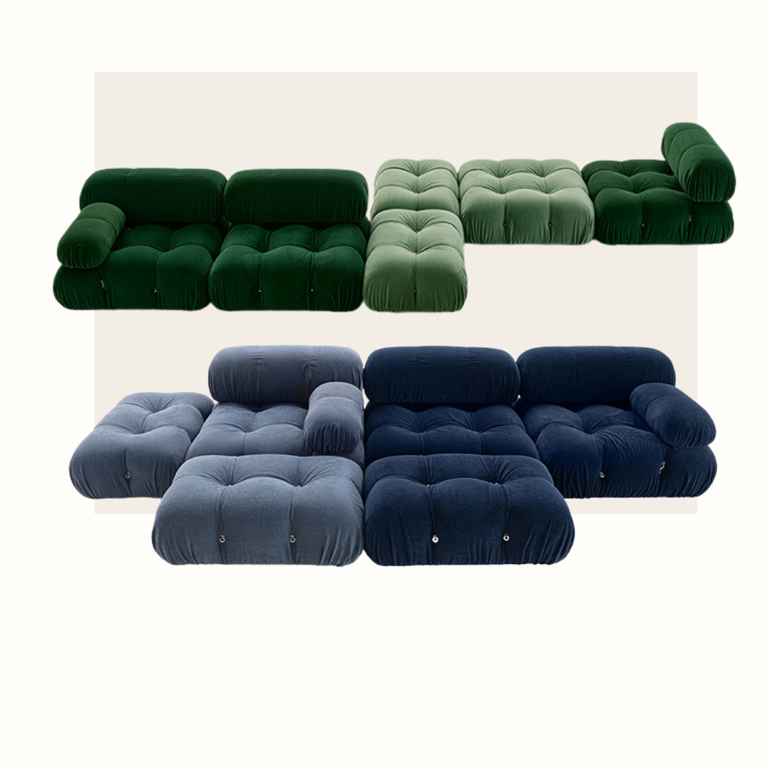 Présenté pour la première fois en 1970, le canapé Camaleonda a été réédité en 2020. Son aspect "pouf" a été révolutionnaire pour l'époque, cassant les codes des canapés rigides et formels. Son nom est une combinaison de "caméléon" (pour son adaptabilité) et "onda" (qui signifie "vague" en italien, faisant référence à ses formes courbes). Les modules sont attachés entre eux par des crochets et des anneaux, permettant une infinité de configurations. Son design est à la fois intemporel et tendance.