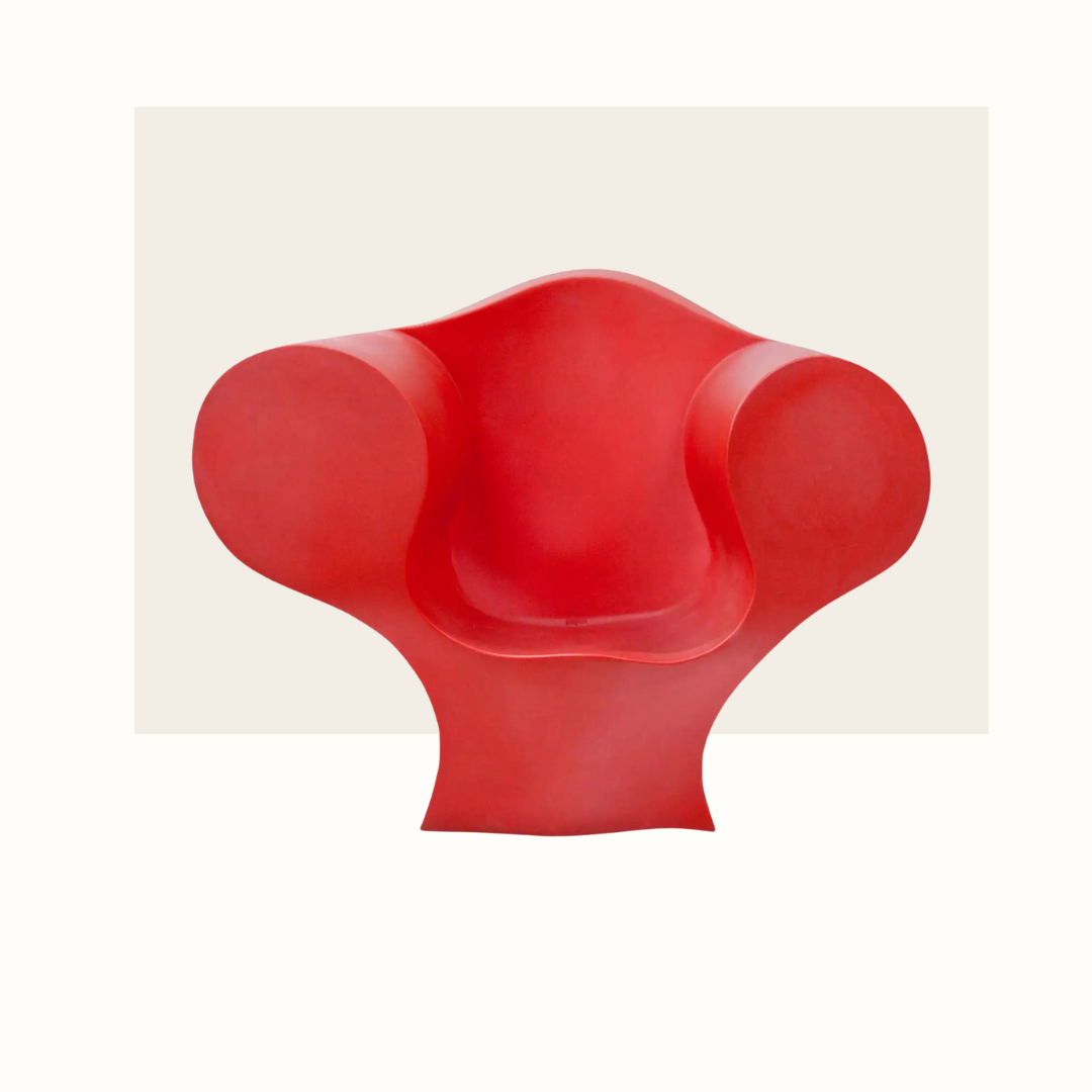 Le fauteuil Gomma, au design organique et aux lignes arrondies, a été créé par trois designers italiens qui ont combiné leurs expertises en innovation, fonctionnalité et esthétique. Gomma reflète parfaitement le style futuriste et décomplexé des années 70, une époque où les designers exploraient de nouveaux matériaux et formes, cherchant à innover pour briser les conventions classiques du design. Il est réalisé en mousse de polyuréthane, un matériau qui était très novateur. Avec ses courbes douces et son aspect presque sculptural, il apporte une touche ludique et décontractée.
