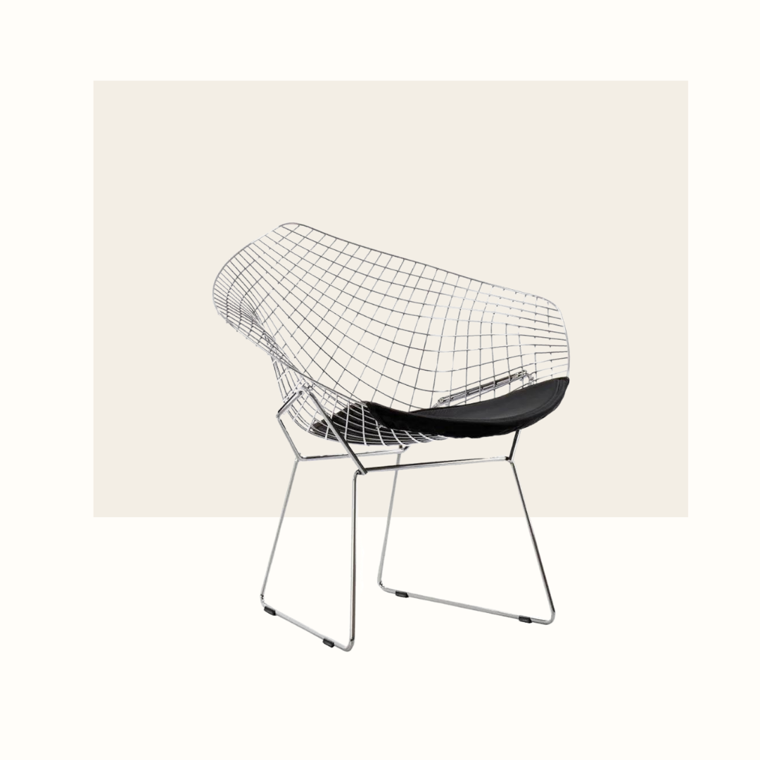 Harry Bertoia était un sculpteur de renom avant de se lancer dans le design de meubles. Lorsqu'il a commencé à travailler sur le fauteuil Diamond, li n'avait pas beaucoup d'argent pour développer son idée, alors il a fait preuve de débrouillardise