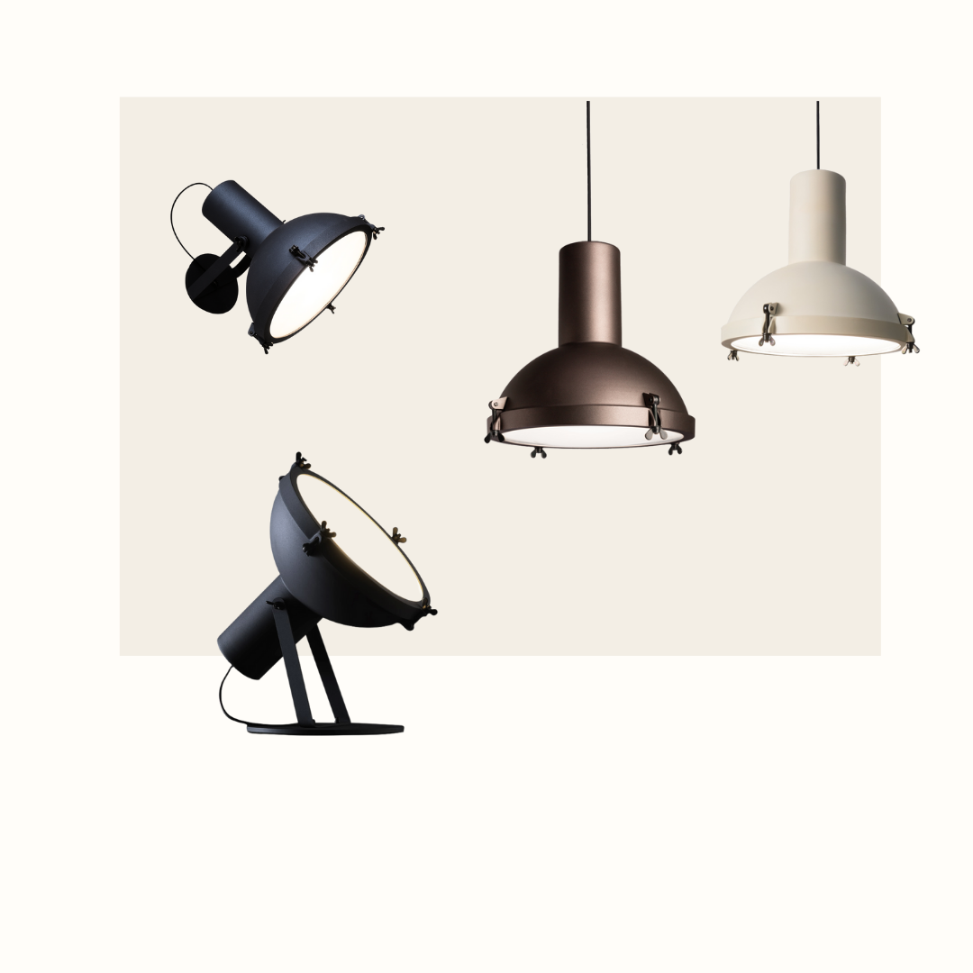 Ces luminaires étaient encore inconnu jusqu'en 2012, année où il a été découvert dans les archives de la Fondation Le Corbusier à Paris. Cette collection, a ensuite été rééditée par la marque Nemo et se décline en 3 versions: plafonnier, applique murale ou lampadaire.