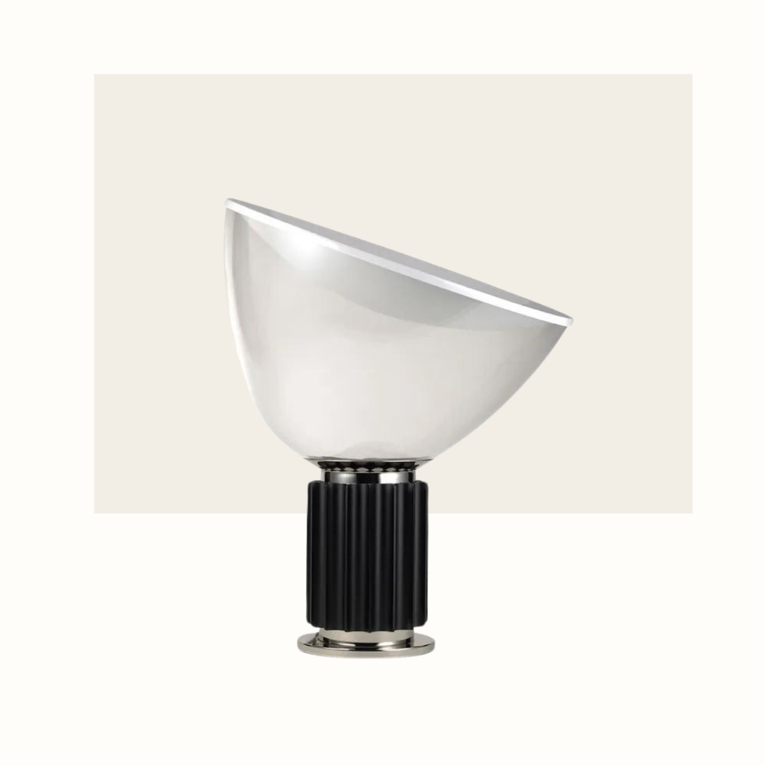 Les frères et designers Castiglioni, inspirés par l'idée d'éclairer une table comme la lune éclaire la terre, ont créé la lampe Taccia dans le but d'obtenir un éclairage à la fois direct et indirect. Lors de sa conception, ils se sont rendu compte qu'un abat-jour en verre soufflé diffuserait la lumière de manière optimale. Mais à cette époque, le verre soufflé produit en série était hors de prix. Ils ont persévéré dans la recherche afin de trouver des solutions de production. Cette réussite a prouvé leur capacité à surmonter les défis techniques tout en gardant leur créativité.